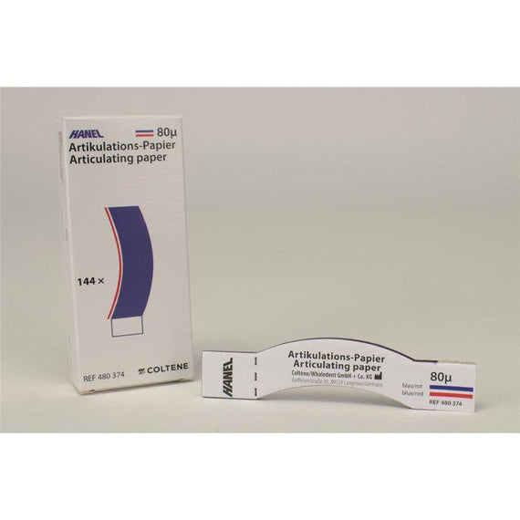 Description:                Coltene ARTICULATION PAPER, DOUBLE-SIDED, PACK OF 144 SHEETS, BLUE / RED HANEL