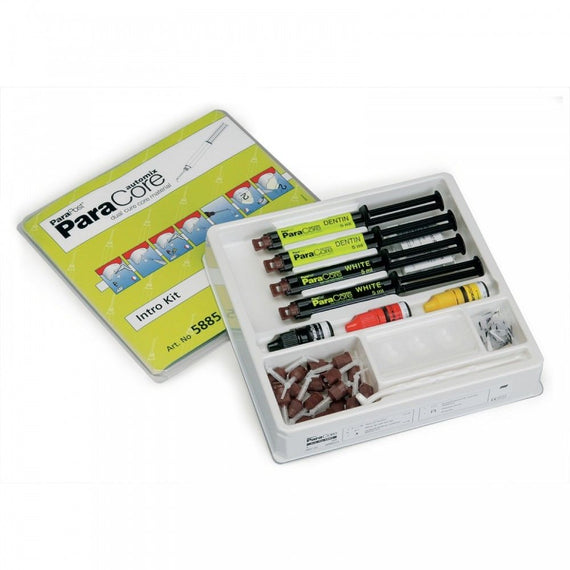 ParaCore is a dual-cured, glass?reinforced composite resin, radiopaque composite system available in three shades. The well-known 3-in-1 material simplifies the post & core restorative technique, because it is ideal for post cementation, core-build ups and crown & bridge cementation. The use of ParaCore as a fixing and abutment material establishes an optimum "monoblock bond interface? between dentin, post and crown to produce a restoration with an unusually long life and very high strength.