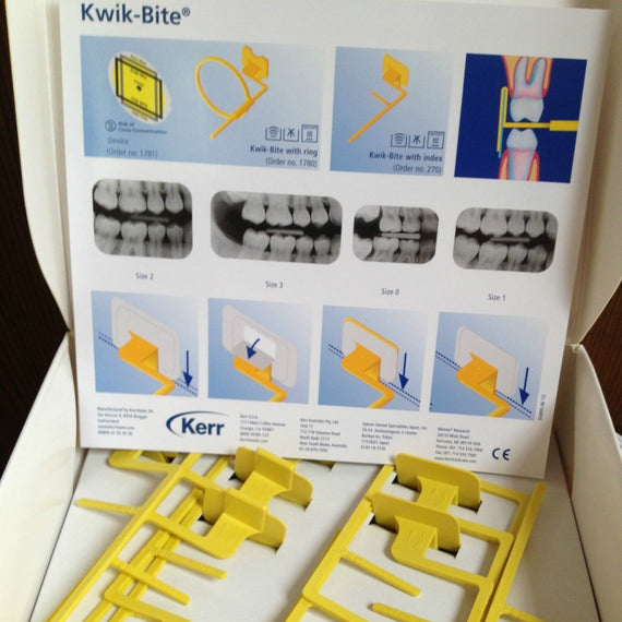 Kwik-Bite is compatible with the most commonly used X-ray film formats (1,2,3). Kwik-Bite with ring is also suitable for indirect digital systems and with all major brands of phosphor plate sensors.
