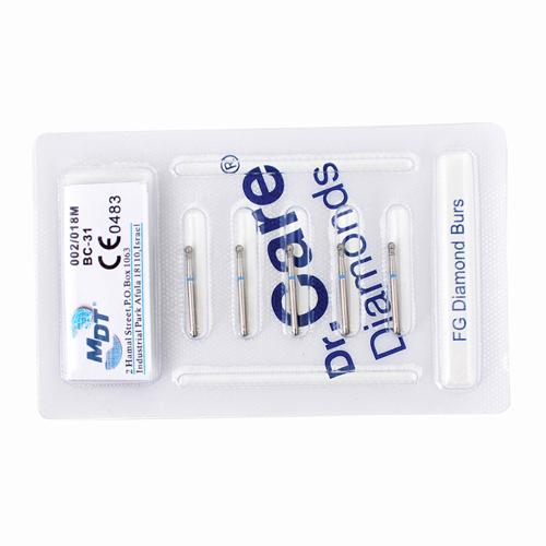 Description: MDT 002-018M/BC-31 FG Round head 1.8mm Blue Medium Diamond Bur FG