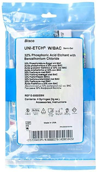 Description:                BISCO E5502EBM Uni-Etch 32% Phosphoric Acid Etchant Dental Syringes 4/Pk 5 Gm